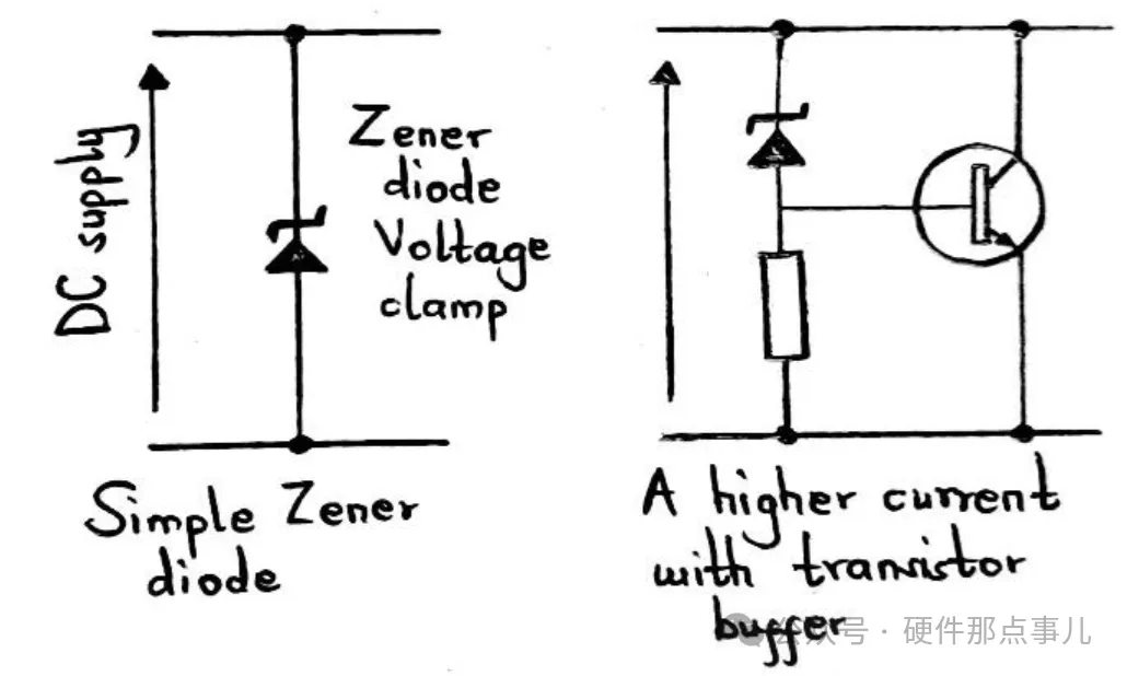 1.稳压管+三极管扩流方案原理图