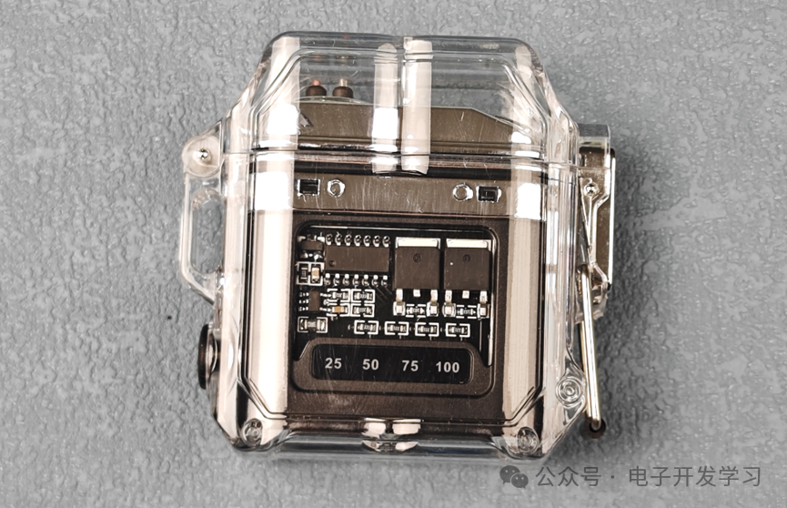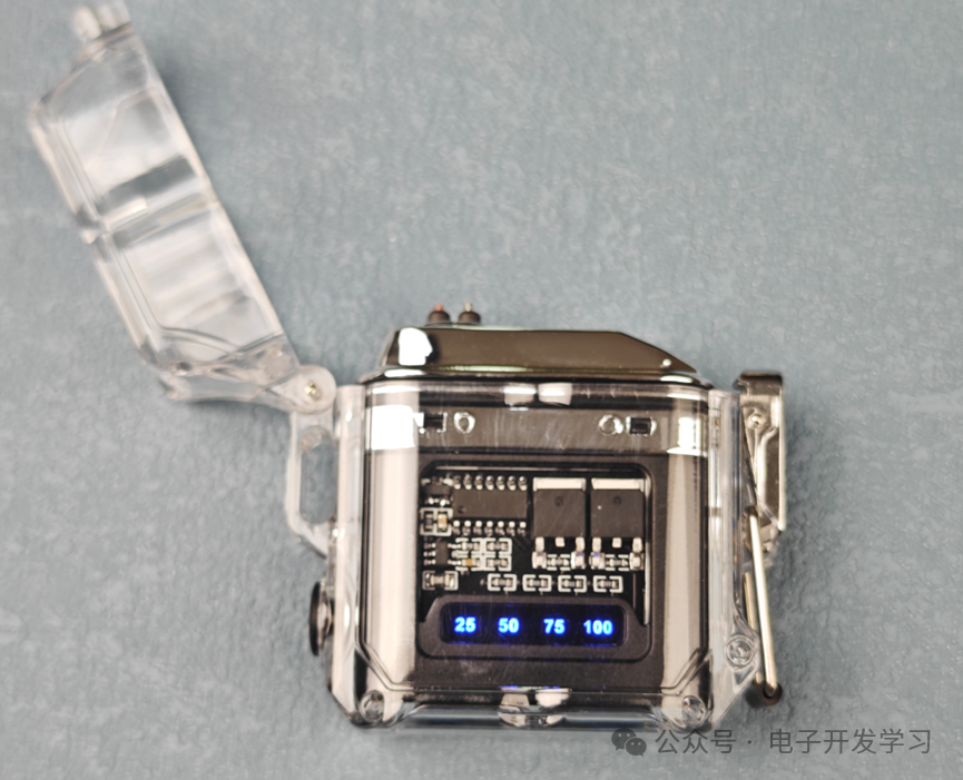 打火的时候,可以看到电路板上的电量指示灯亮了,分了四个档位,现在应该是满电状态。