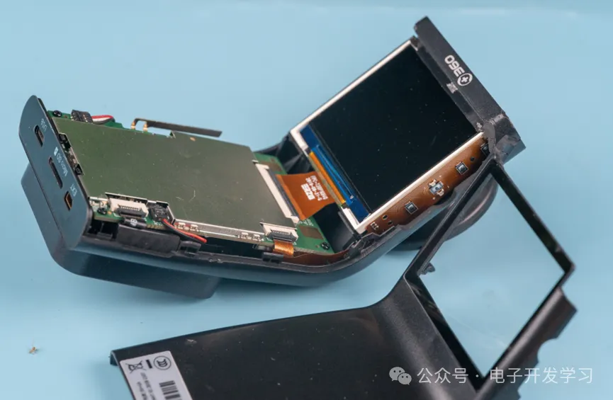 拆解,摄像头背后是屏幕,裂开的位置是电路板。