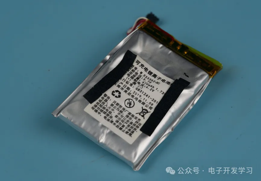 拿出电池,发现已经干瘪了。这是一个容量470mAh的锂电池,容量虽然不高,但是可以在停车熄火的状态下进行延时拍照,这样长时间不启动汽车时,不会损坏车的电瓶。