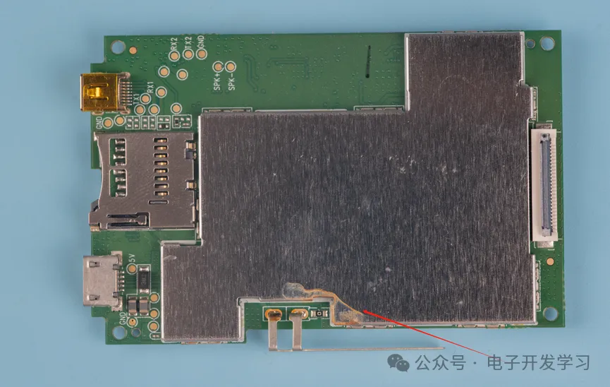 另一面的屏蔽壳焊点上也有一些锈迹。