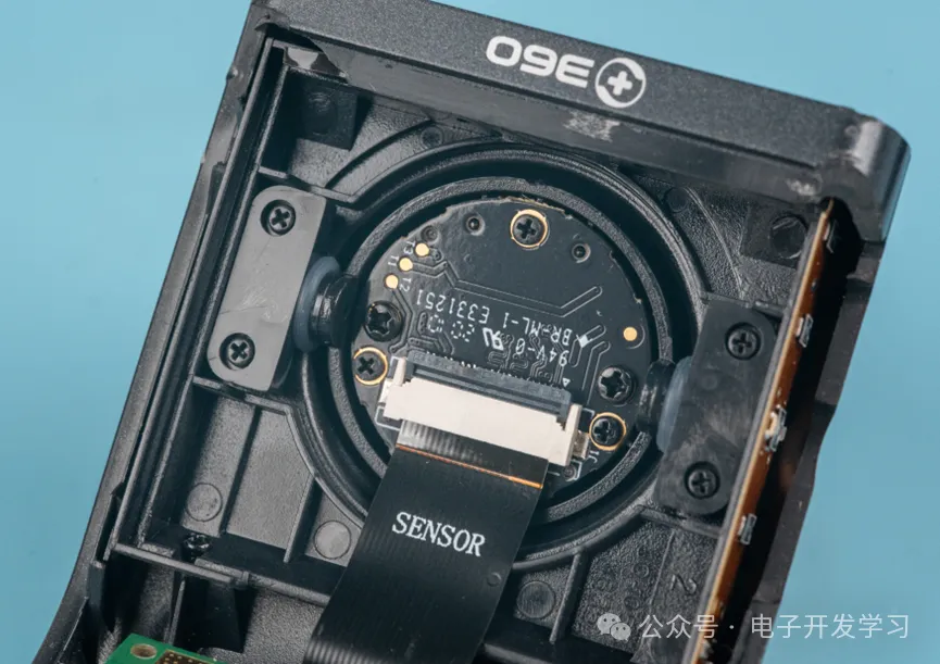 去掉屏幕之后是图像传感器板子。图像传感器板安装在一个可以旋转的结构上。