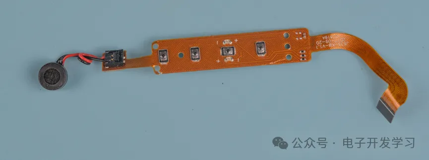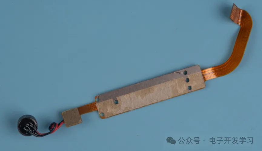 屏幕旁边的软排线,背面有补强板。麦克风也通过这个板子连接到主板上。