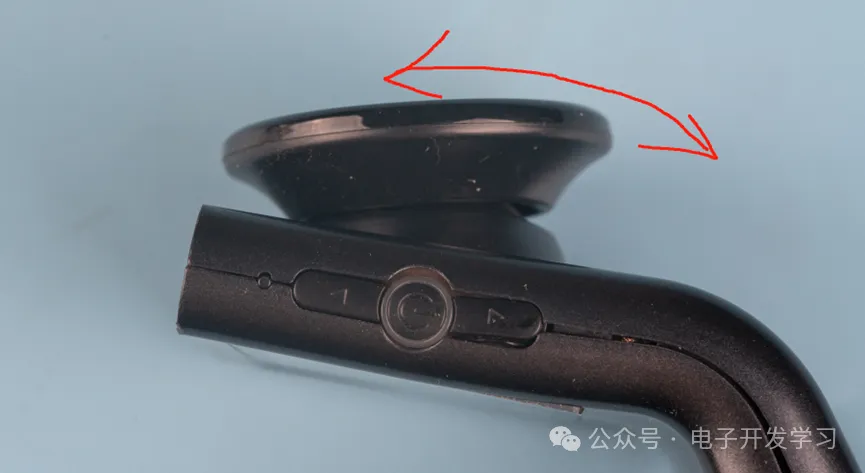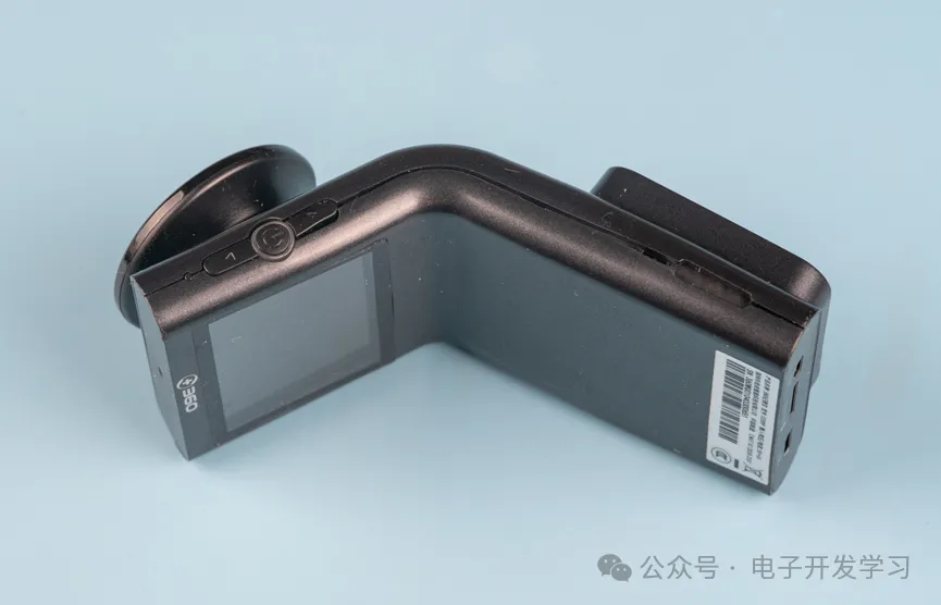 摄像头可以旋转。侧面有开关机按键和上下按键。