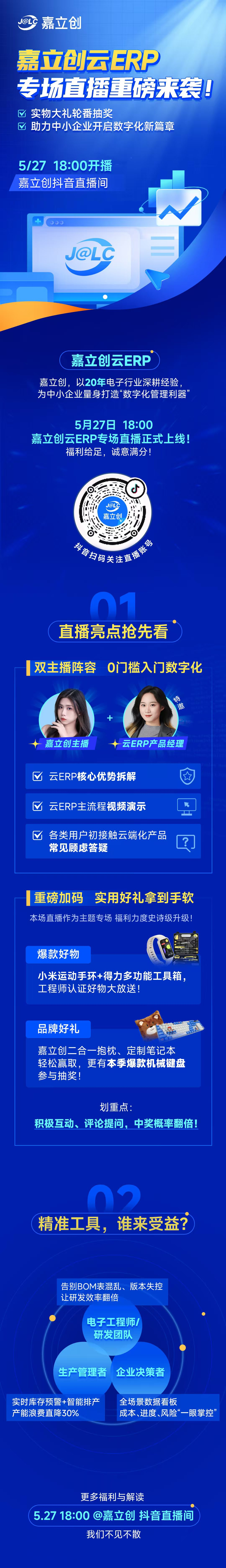 嘉立创云ERP专场直播,5.27 18:00 豪礼来袭!