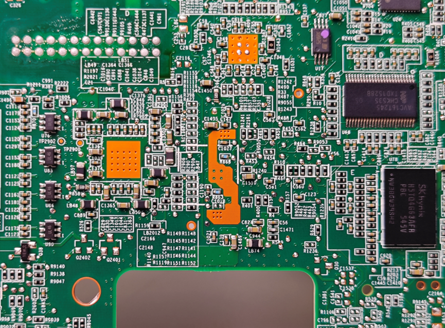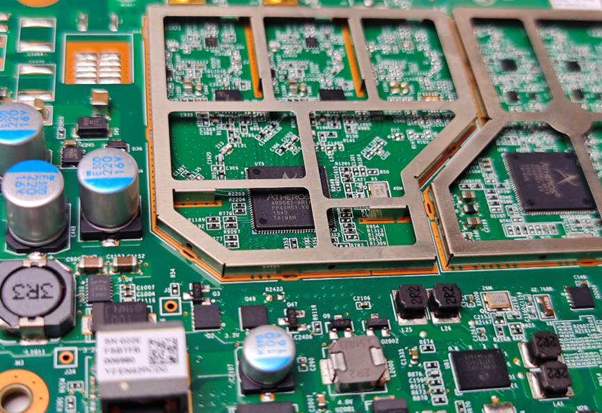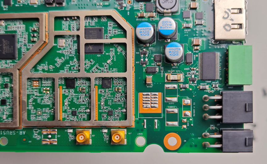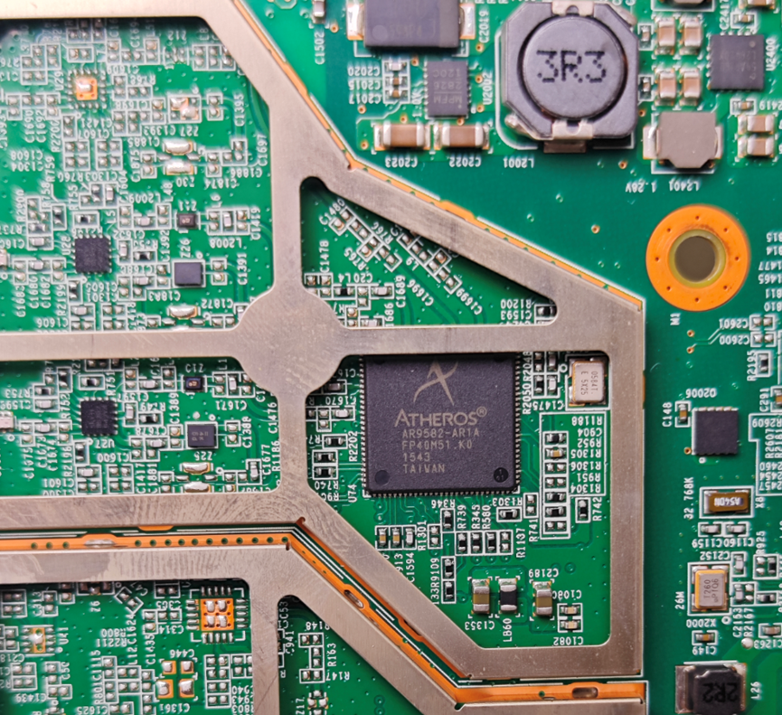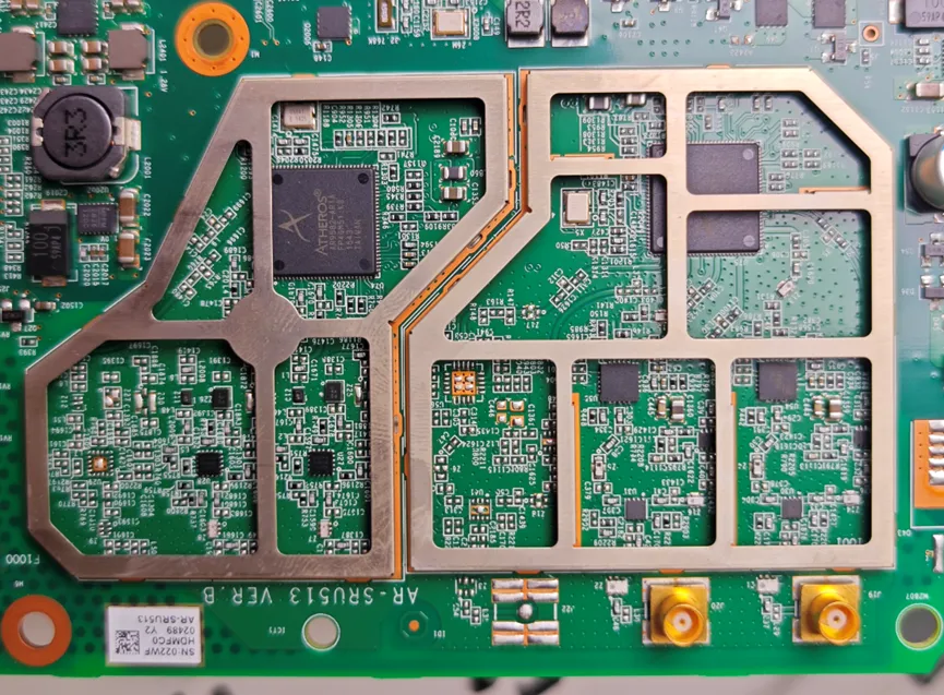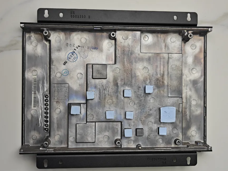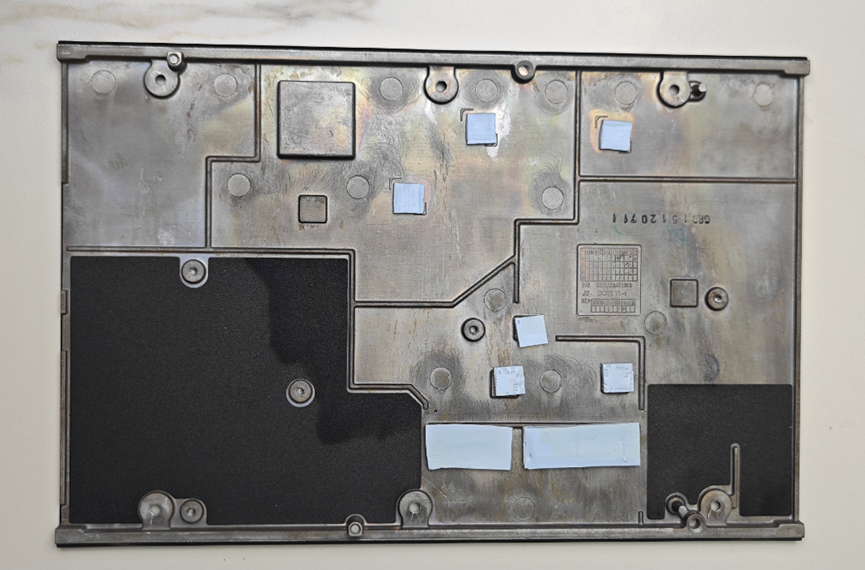 底壳看起来是铸造的,直接根据板子上需要散热的芯片的高度,在外壳上做了不同高度的凸台,贴上散热硅脂片就可以进行散热。