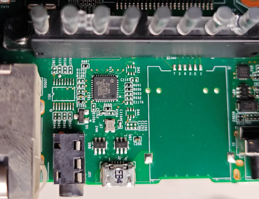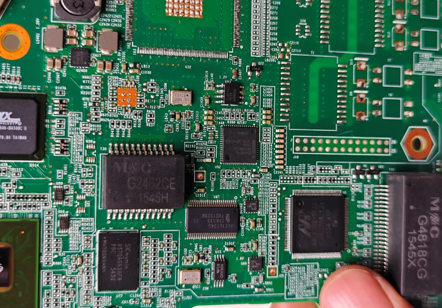 打开上盖之后,整个里面是一个绿色的大板,看着还挺复杂。