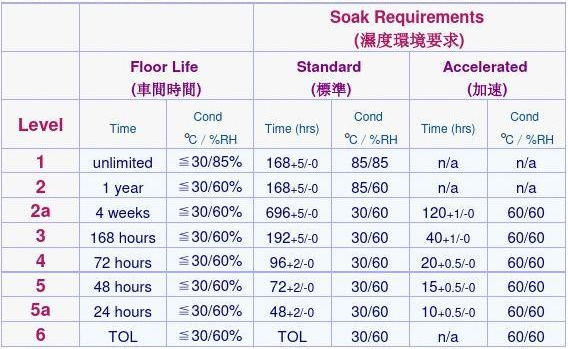 器件拆封后暴露时间超过规定限制:如下的器件湿气敏感性等级表MSL(Moisture Sensitivity Level)我们可以看到,对不同等级的器件暴露时间都有一定的限制,可以据此进行干燥处理。