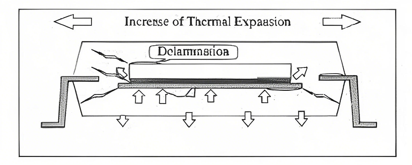 例如,一些IC芯片(如BGA、QFN封装等)内部水分在回流焊高温作用下急剧膨胀,压力超过其内部结构的强度极限,就会导致器件内部分层甚至爆裂。