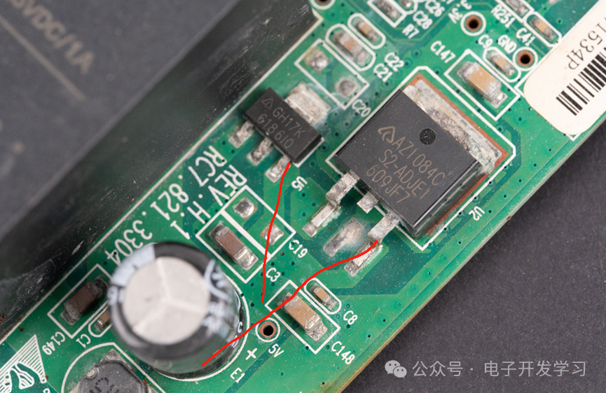 这个TO-263封装的AZ1084CS2-ADJTRE1,是来自美台的可调线性稳压器。旁边的SOT-89封装的器件是来自美台的AZ1117,是一个LDO。
