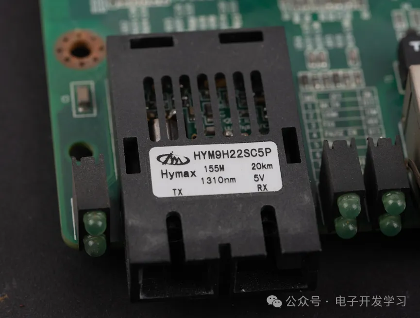 作为一个光纤收发器,最关键的接口当然是光纤收发接口。里面应该是一个LD及驱动电路、PD及接收电路。