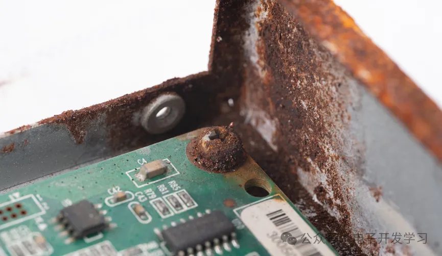 连固定电路板的螺丝也已经严重锈蚀。