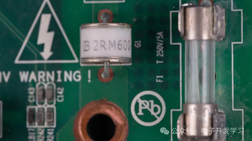 火线上串联了一个陶瓷气体放电管(GDT),型号是2RM600L-8,来自Brightking(君耀电子)。