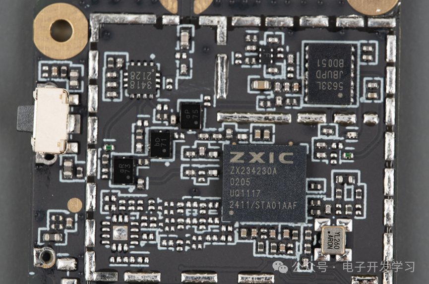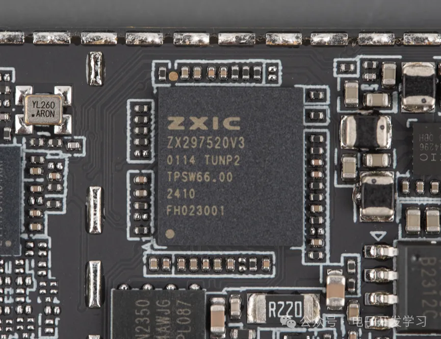 旁边的射频收发芯片ZX234230A也来自中兴微电子。