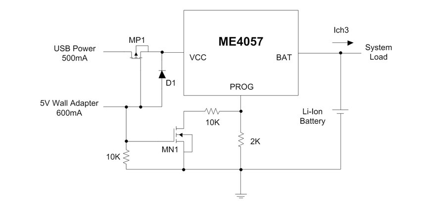 板子背面是这个SOP-8封装的芯片根据丝印看是ME4057A,锂电池充电管理芯片。