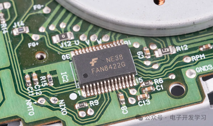 电路板,电路板上这个金属大圆盘就是个电机。尝试了一下这个电机不是很好拆。
