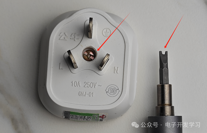 打算拆开看,结果发现螺丝居然是下面这种,公牛的插板好像也是用的这种螺丝。找了一大堆东西都弄不开
