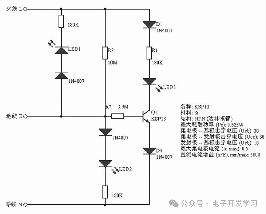 大概看了一下这个电路,就是在插座的每两个弹片之间加一个1N4007、一个LED和一个150K电阻,另外,这个三极管的基极串联一个电阻之后接到了接地弹片。电路图网上找到一个现成的: