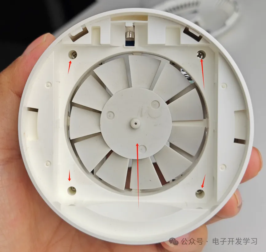 去掉驱蚊片之后可以看到下面的风扇和四个螺丝,二话不说直接拆