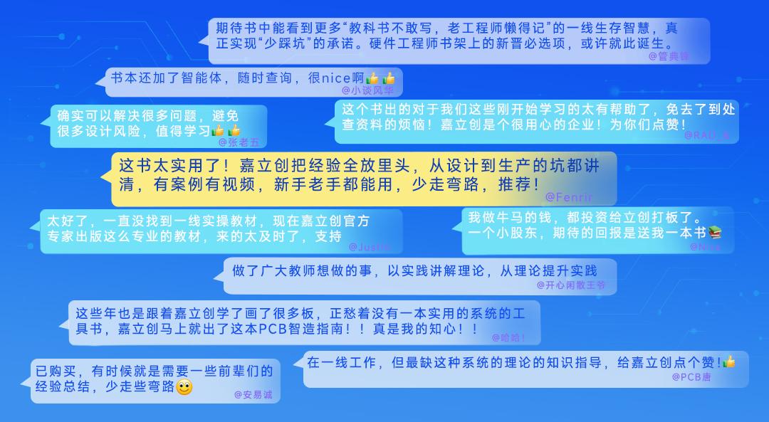 在第三届开源硬件星火会上,50本首发签名版瞬间告罄;在线上,嘉立创发布新书消息后,迅速吸引了超过26000名工程师的目光,而超过1300条热切的留言,更是将评论区变成了工程师们的“许愿墙”。
