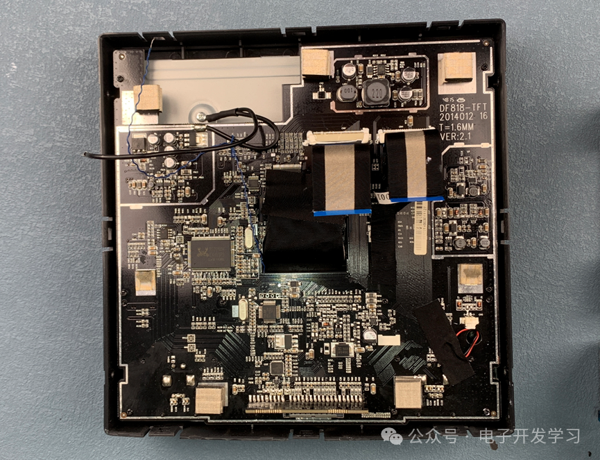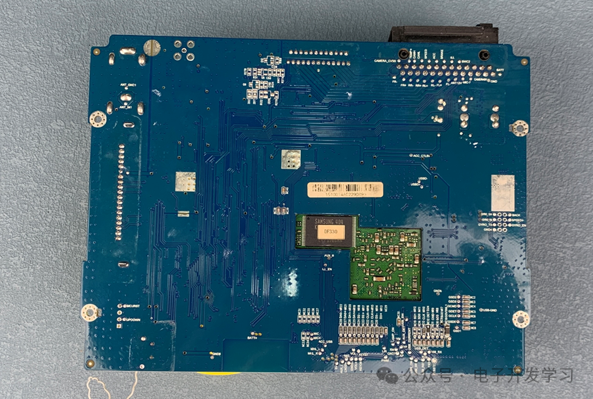 这个板子背面没有啥其他东西,在核心板的肚子下面有电容和flash颗粒的位置掏了一个洞。