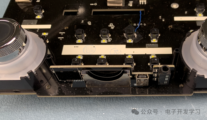 板子底部开槽然后插入了一个SD卡/USB/耳机接口的子板。