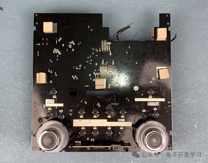 拆下来的时候,发现两个旋钮跟着一起拿下来了。除了旋钮,就是一堆按键,这些按键和车机面板上的操作按键是一一对应的。