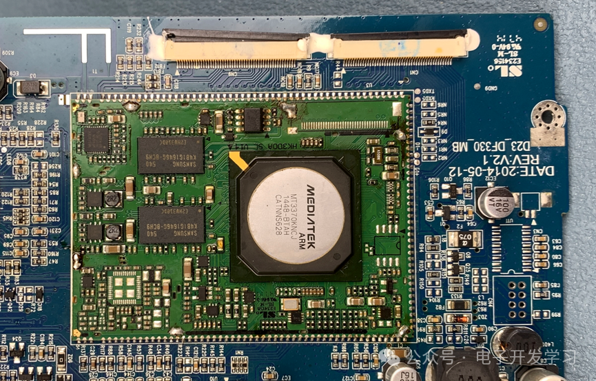 拆掉屏蔽壳之后,最大的这颗芯片,是MT3370,我查了一下,说这个是DTMF信号收发芯片。内存颗粒是三星的料K4B1G1646G-BCH9。左上角那个连接到底板倒F天线的芯片是MT6622N,这是一个蓝牙2.1+EDR功能的芯片,所以之前地板上的天线也就是蓝牙天线了。关于这个EDR,我搜到的信息是数据记录系统 EDR (Event Data Recorder),这个确实不怎么了解,希望能得到大佬科普。