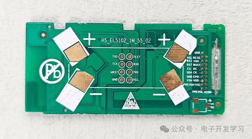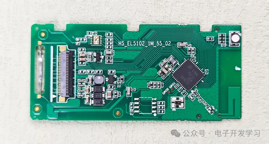 可以看到墨水屏是通过FPC软排线连接到电路板的PFC座子上的。墨水屏的外面套了一圈白色硅胶软垫。绿色的电路板看起来做工很漂亮,于是把墨水屏拿掉,单独看看电路板。