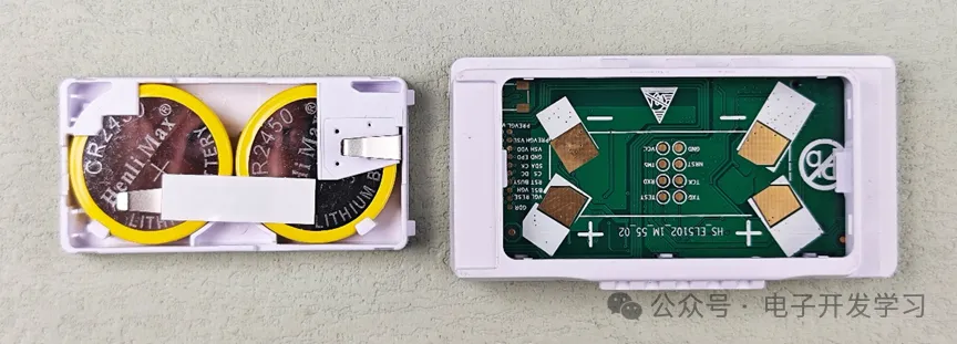 后盖居然塞了两个CR2450的电池,绿色的电路板看着质量还不错。