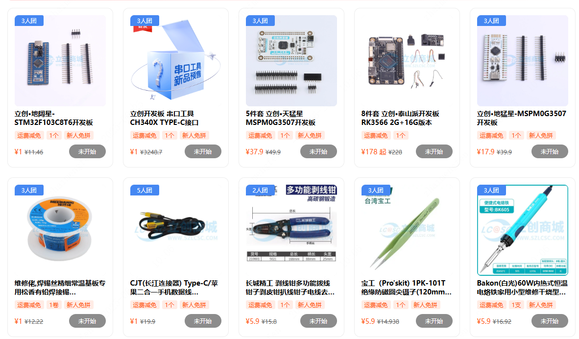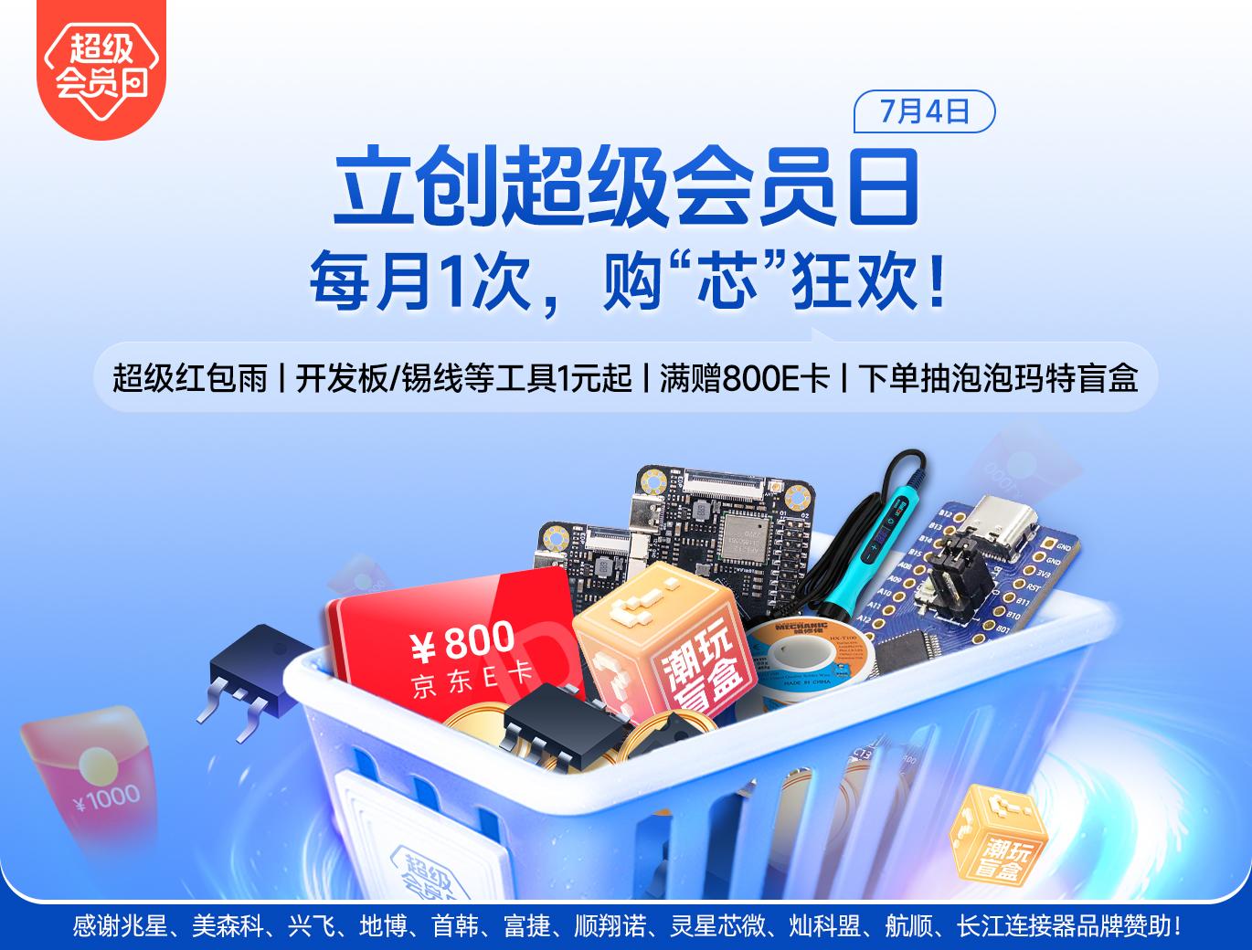 7月4日多款电子人刚需商品限时特惠,立创开发板、焊锡丝、电烙铁、镊子等,商品低至1元团购,囤货就趁超级会员日当天