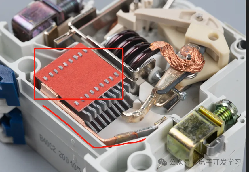 大概原理搞懂了,但是这里面有一个红色的配件我百撕不得琪姐,这玩意到底是干啥的。于是我上网搜索了一下,得知这应该是一个灭弧装置。但是这个灭弧装置的工作原理是什么,我又不得琪姐了。