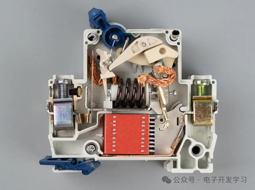 以前不知道空气开关是什么内部构造,今天终于有机会拆开看了,但是还是有一些疑问没有解开,比如那个灭弧装置的原理是什么等等?欢迎大佬在留言区科普。