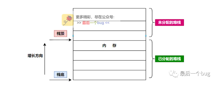 首先我们要明确的是栈同样也是分布在我们的内存之中,而内存是通过地址来进行编排访问的,如下是堆栈的示意图: