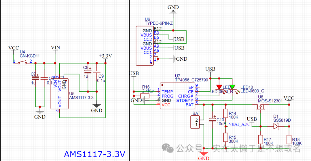 然后电源部分呢是想设计成锂电池和TypeC混合供电。