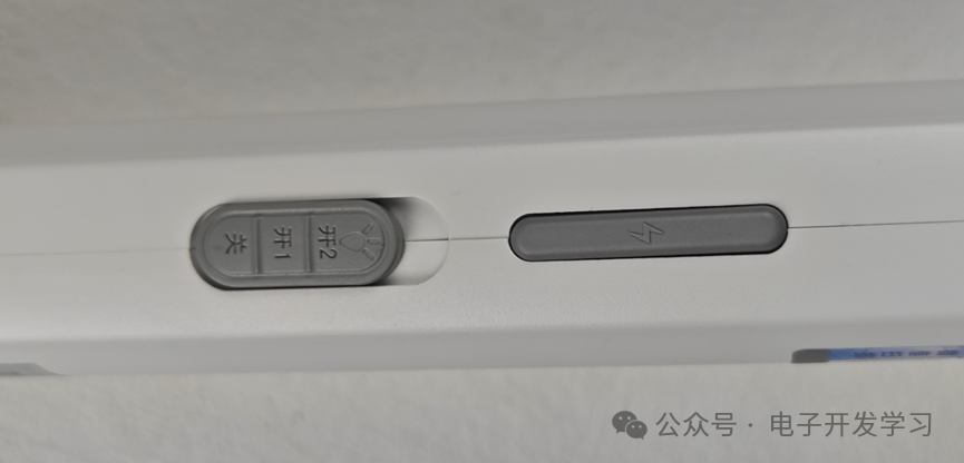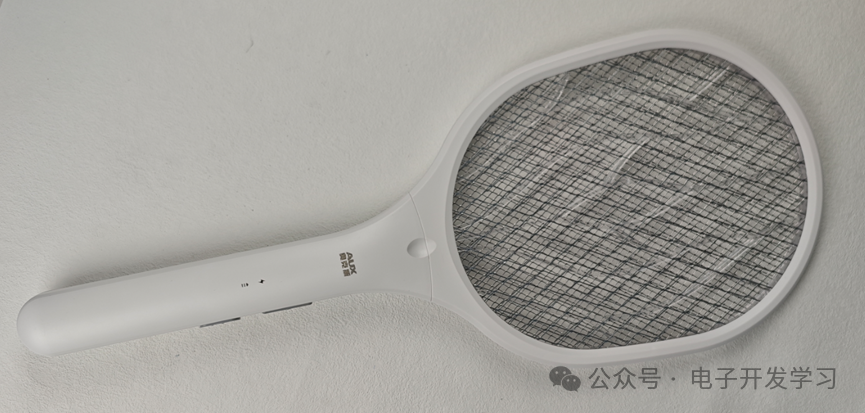 先回顾一下手柄侧面的交互逻辑。拨动开关到开1或者开2的档位,然后按下带闪电标志的这个按键,就可以除三害了。一句话,我买这个电蚊拍,只灭三种害:蚊子,蚊子,还是甜蜜的蚊子。