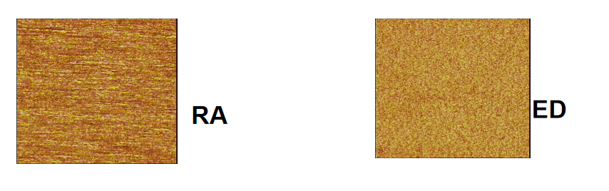 铜箔是印制线路板的导体材料使用最多的金属,FPC的制造中常用的两种铜箔材料就是压延铜(RA)和电解铜(ED),两者的主要区别如下: