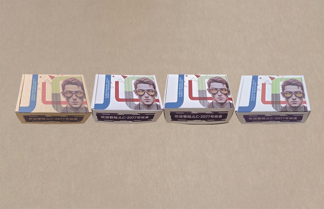 印刷效果的好坏,纸张是决定性因素之一。为了直观展示差异,嘉立创纸盒使用同一设计文件,在四种常用材质上进行了印刷测试,分别是黄牛皮纸/白牛皮纸/白卡纸/白卡裱坑纸。