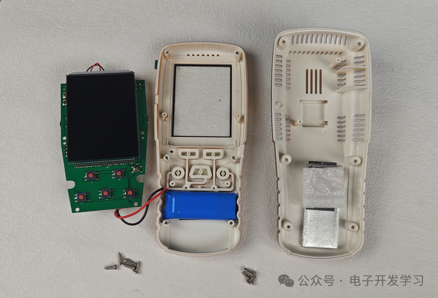 整个产品非常简单,一个电路板,两个外壳,一个电池,10颗螺丝,基本上就是这些东西。