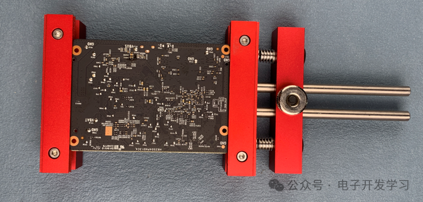 为了追求完美,给这个位置补焊一个电容(容值耐压多留裕量)上去。焊接的时候板子放在桌面上不太给力,用这个焊接夹具夹住就非常稳妥了,焊接手感好的一笔。焊接好电容,清洗干净板子。我发现自己真是人菜工具多,修这么个小玩意,热成像仪也用上了,焊接夹具也用上了。