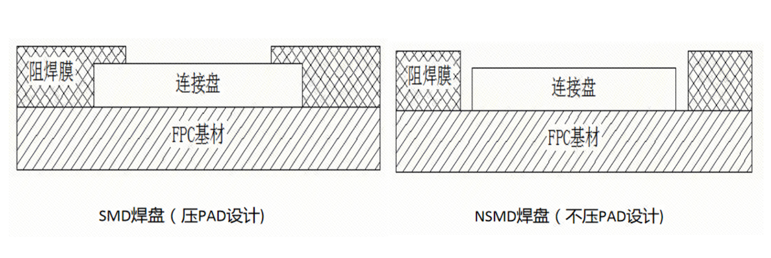FPC是用覆盖膜做为阻焊膜,如果用SMD焊盘设计,覆盖膜能压住焊盘周围,俗称压PAD设计,这样会使焊盘与基材更加牢固。
