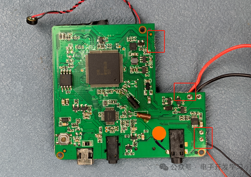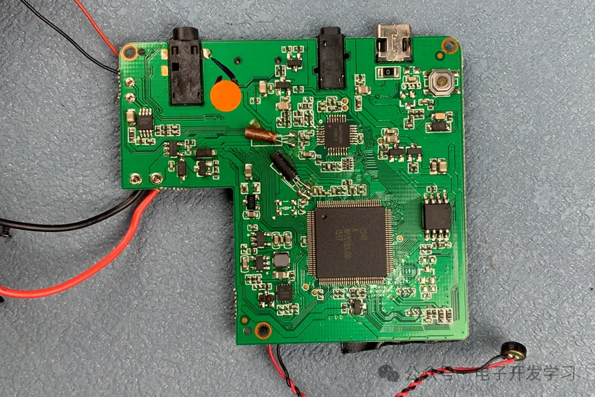 电路板正面,主控芯片封装是LQFP-128封装的芯片,丝印MP2UY69.00,网上完全没查到这个芯片的任何信息。另外有一颗QFN-32封装的芯片,其型号是GM7150BC,这是一颗9bit的低功耗NTSC/PAL视频解码器芯片。