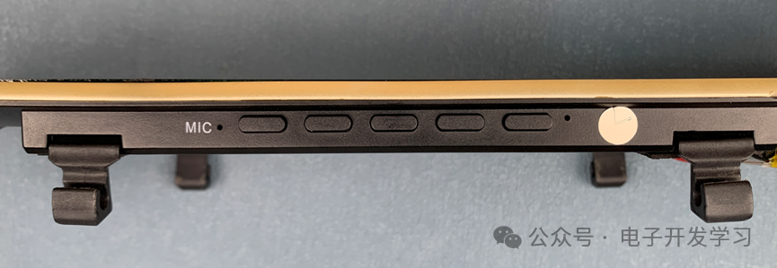 回到拆解主体,这个后视镜行车记录仪下边缘有五个按键和MIC孔。