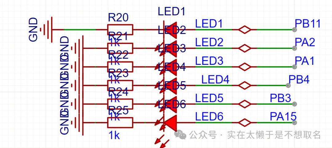 根据引脚的实际布局,分配控制LED的引脚,引脚分配得当可以减少后面的走线难度。