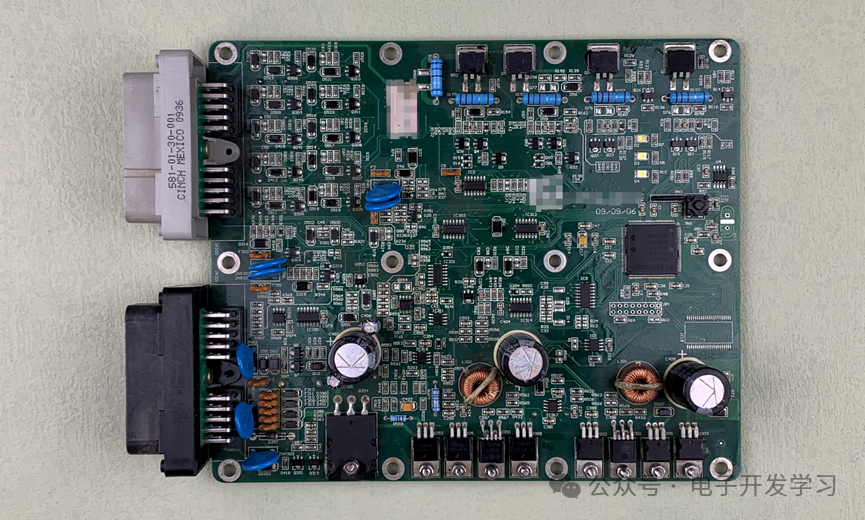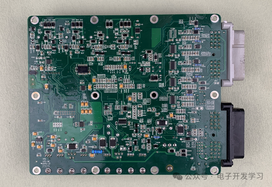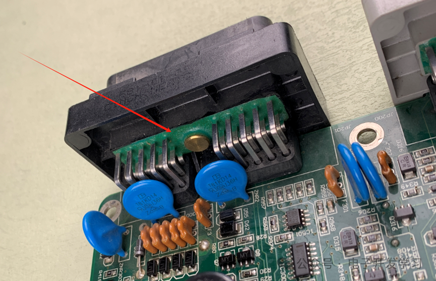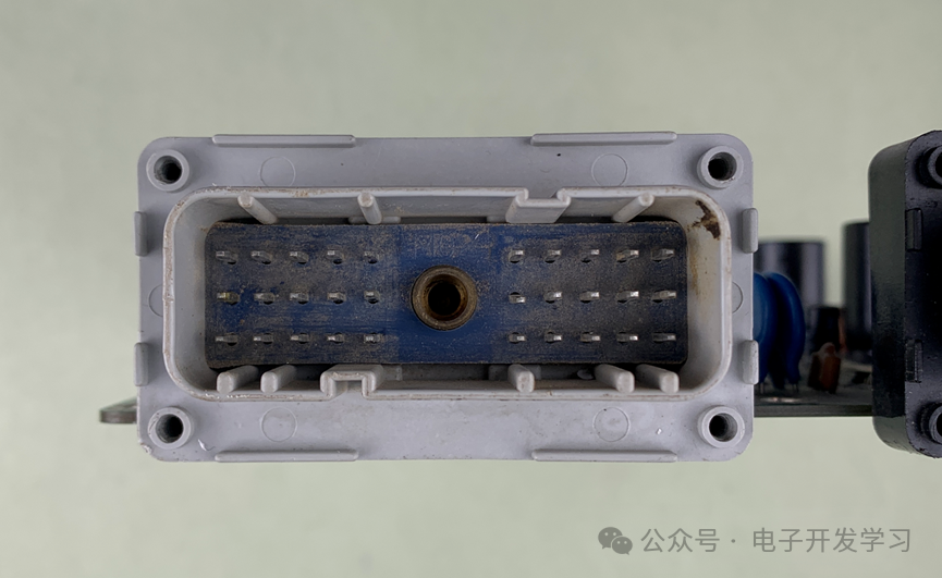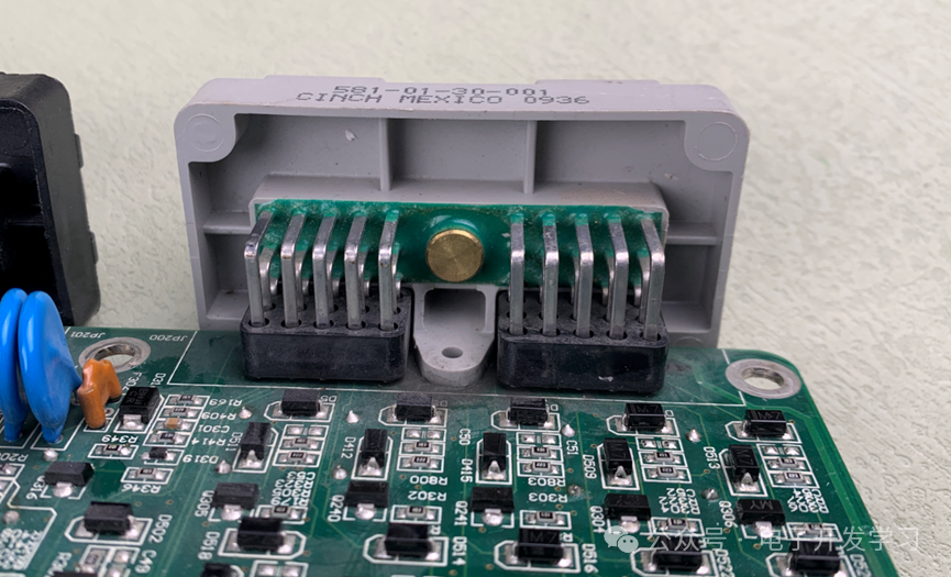 这个连接器也是,做了灌封。由于这个上面全部是各种控制信号和传感器信号,所以入口处有一堆二极管、三极管、电阻,看起来是放浪涌的。