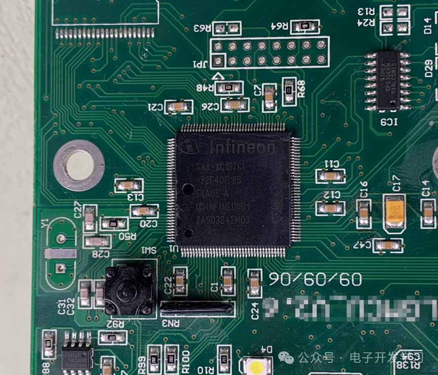 主控芯片是英飞凌的SAK-XC167CI-32F40F,这是一个16bit的C166SV2内核的单片机。