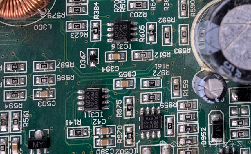 板子上还有不少SOP-8封装的Ti的LM2904,这是一个双路运放。