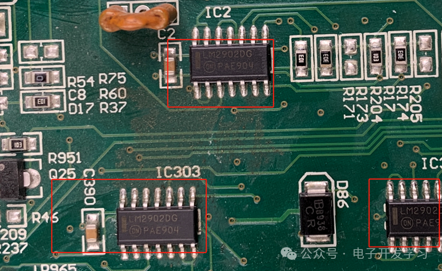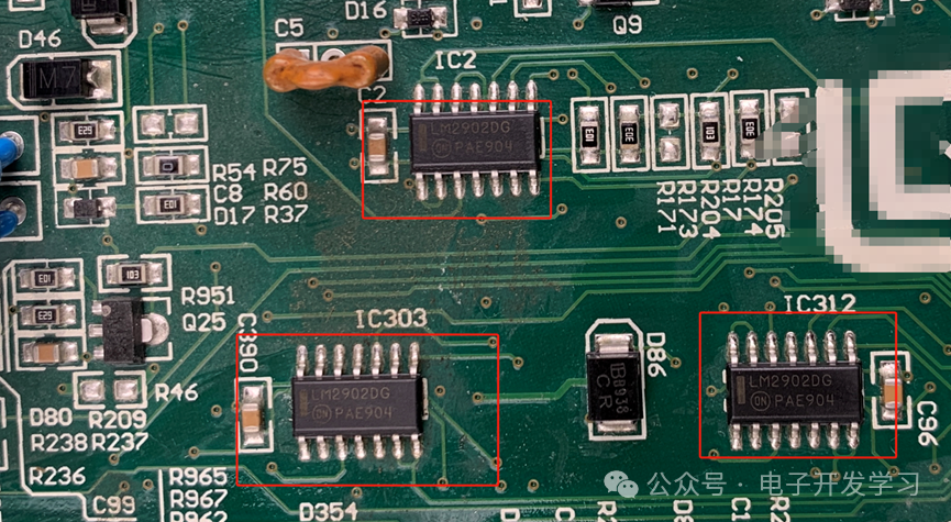 板子上用到了大量的安森美的LM2902D,这是一个四通道运算放大器。