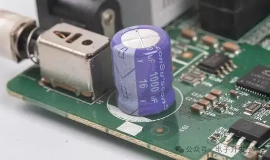 电源入口处有一颗1000Uf16V的电解电容。