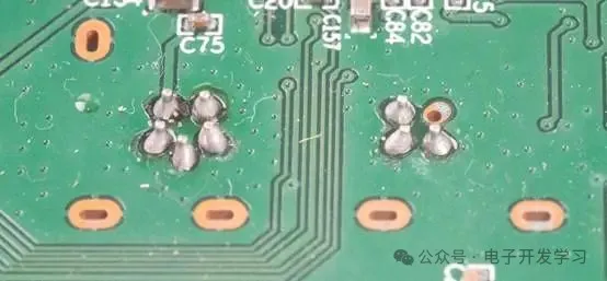 这是光纤收发器焊接在板子上之后的焊点。
